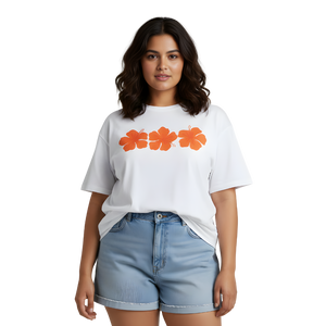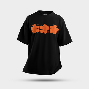 Feel the sunshine with this Triple Hibiscus Oversized T-Shirt showcasing three bold orange hibiscus flowers.