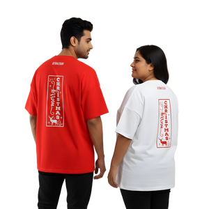 Celebrate the season in style with our Vertical Christmas Oversized T-Shirt featuring a bold red line-art design with a reindeer, tree, and festive lettering. A perfect holiday essential for cozy celebrations and streetwear lovers.