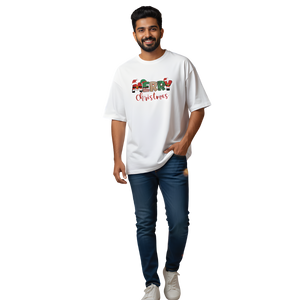 A playful oversized Christmas T-shirt with multicolored lettering printed on soft French Terry fabric. Warm, comfortable, and long-lasting—perfect for school events, group photos, and holiday celebrations.