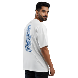 Inspired by Kashmiri embroidery, this tee features a stunning blue floral motif with detailed linework.